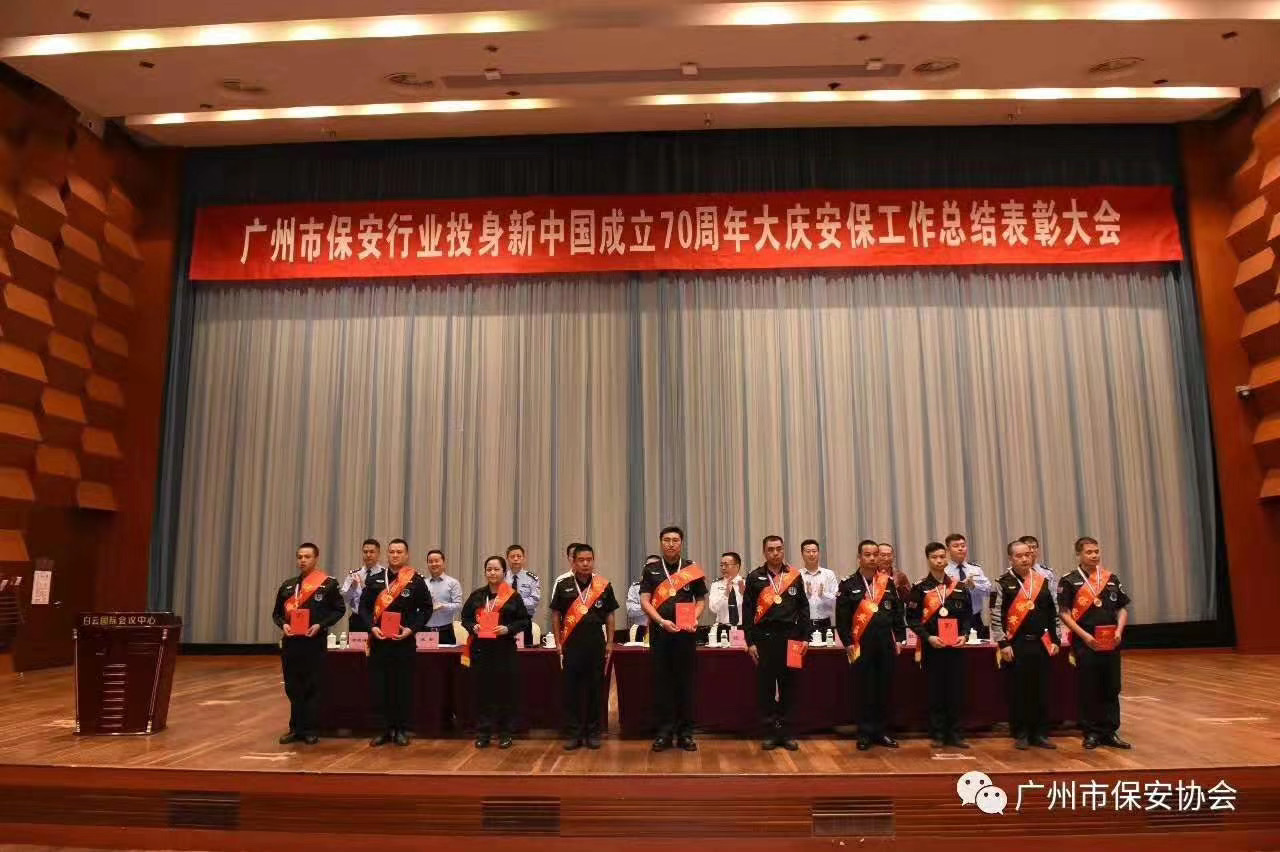 广州市保安行业投身新中国成立70周年大庆安保工作总结表彰大会,圆满成功。祝贺红棉国际时装城保安部唐小河,被评选为2019年度优秀保安员。